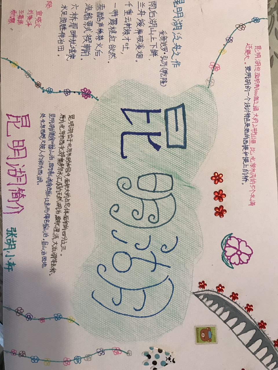 张胡小轩组昆明湖手抄报
