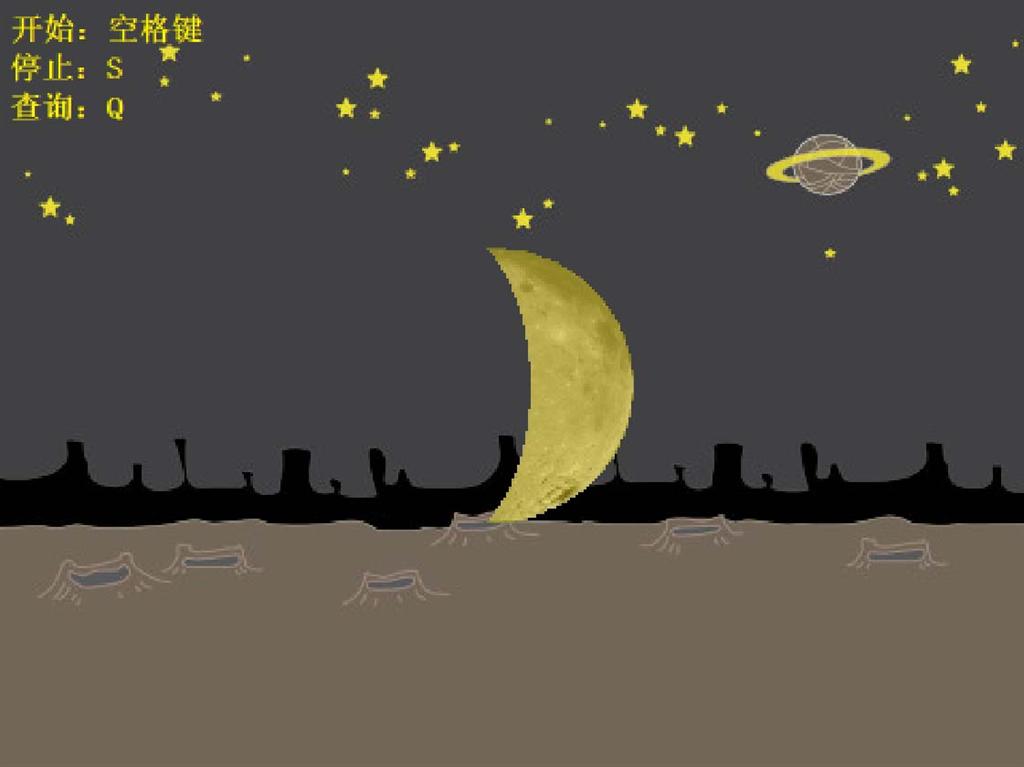 欢迎来到“模块8:月亮变化”,我们将制作一个程序,当按空格键时开始演示月亮从初一都三十的变化过程,而且用户可以输入日期查询某一具体日期的月相。