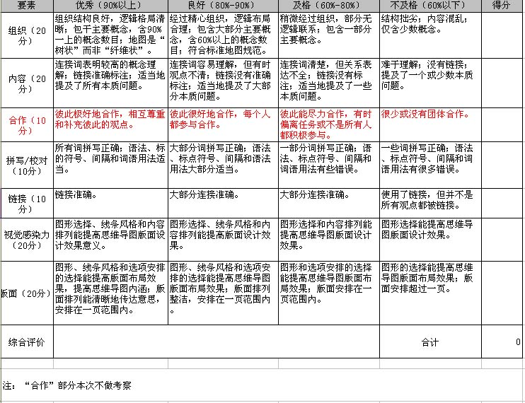 绘制思维导图的评价量规