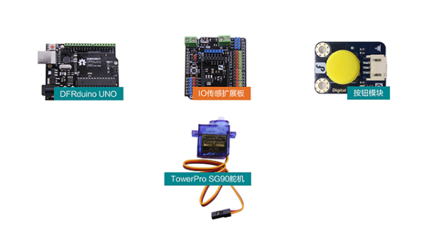 Arduino UNO板、IO扩展板、SG90舵机、按键