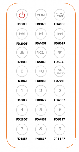 遥控器上的每个按键都对应一个16进制的数字,按键与数字对应如下: