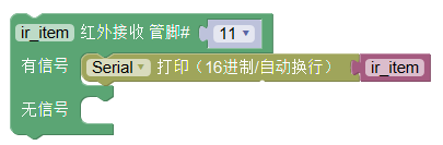 模块功能:判断是否接收到红外信号,若接受到红外信号,则在串口监视器中输出红外信号的类型和信号数值。
