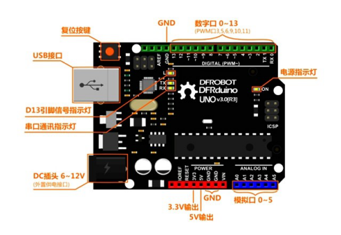 ArduinoUNO板是目前最常见的Arduino 主控板,本系列课程的所有编程及功能实现都将基于UNO板进行。