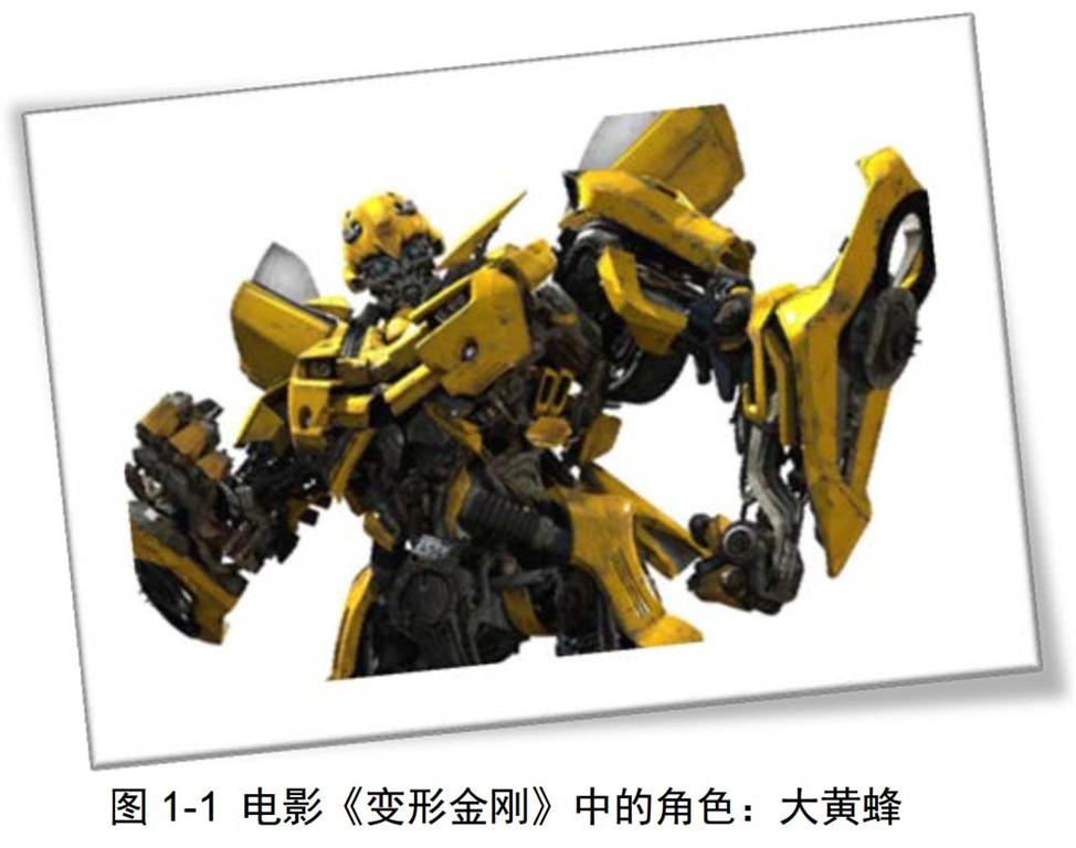 电影《变形金刚》(参见:图 1-1)讲述了一个名叫萨姆·维特维奇的少年,因一次机缘巧合而被卷入了代表正义的汽车人和代表邪恶的霸天虎之间的战争。两派机器人来自一个外星球,是立场相互对立的两派机械生命体,既可以变形成直立行走且战斗的机械人,也可以变形成人类生活中各种常见的机械体。电影由迈克尔·贝担纲导演,斯蒂芬·斯皮尔伯格担任执行制片人。