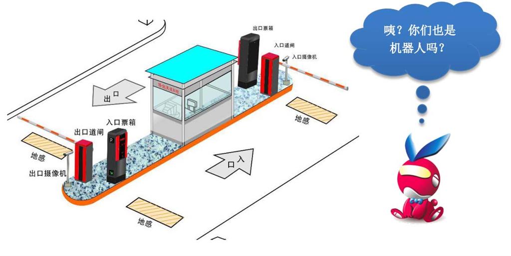 小区门禁道闸系统(参见:图 1-7),俗称为“自动升降杆”。进出的汽车靠近后,或者因为感应,或者使用门卡或遥控器,门闸自动起杆。汽车通过门闸一小段时间后,自动落杆。我们可以把这套系统看作是机器人系统。