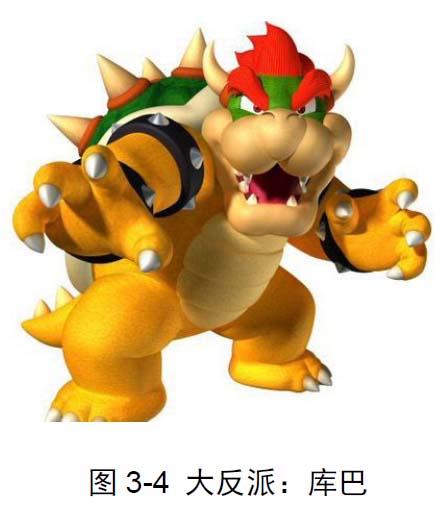 在游戏《超级马里奥兄弟》中这个大反派叫: 库巴(参见:图 3-4)。 它是电子游戏史上第一位拥有独立形象的反派,他也是电子游戏史上出场次数最多的反派。