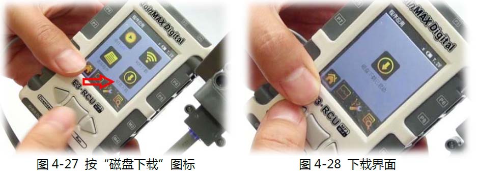 在“程序应用”菜单(也就是打开之后的首页)上,按“磁盘下载”图标(控制器的屏幕是触屏),会进入“磁盘下载已启动” 界面 (参见图4-27、4-28)。