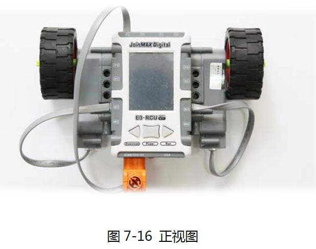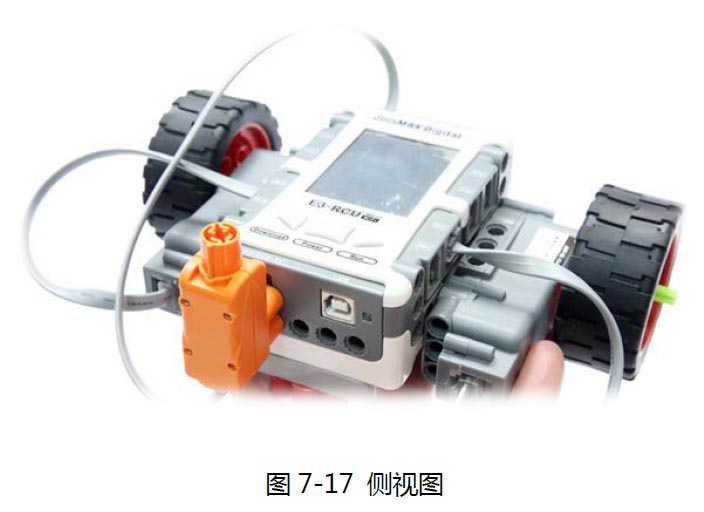 安装上后,小车的样子如下(参见图7-16、7-17),触碰传感器接P1 口: