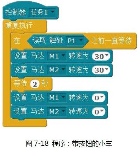 任务描述:小车上装了一个按钮(触碰传感器),按一下小车就向前走2 秒,然后停车,再按小车再走……