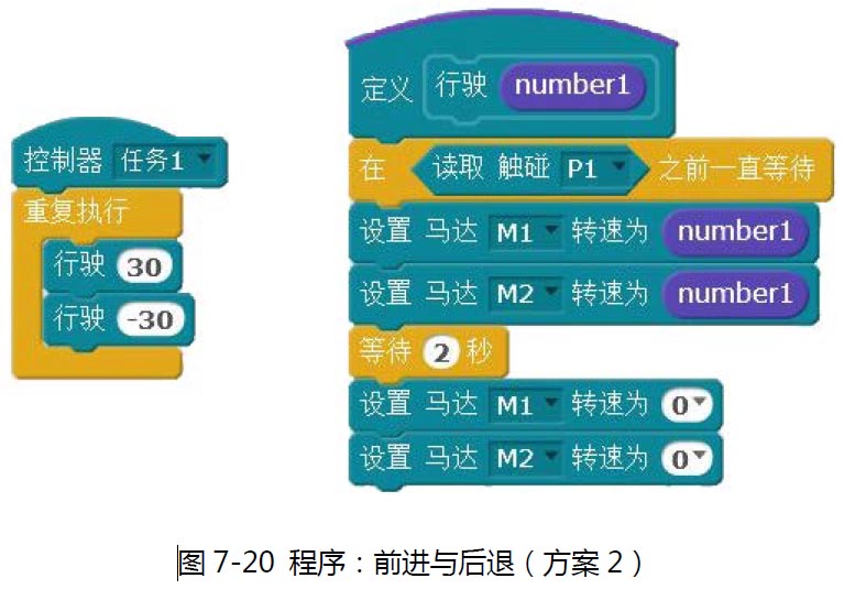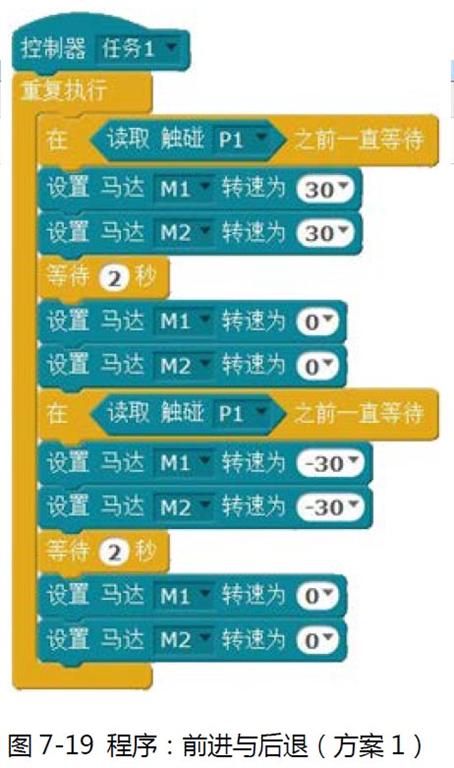 任务描述:按一下按钮(触碰传感器)小车前进,再按一下小车后退,再按前进,再按后退……