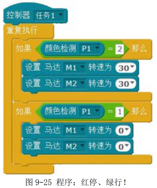 任务描述:小车看到小绿旗,就走;看到小红旗,就停。