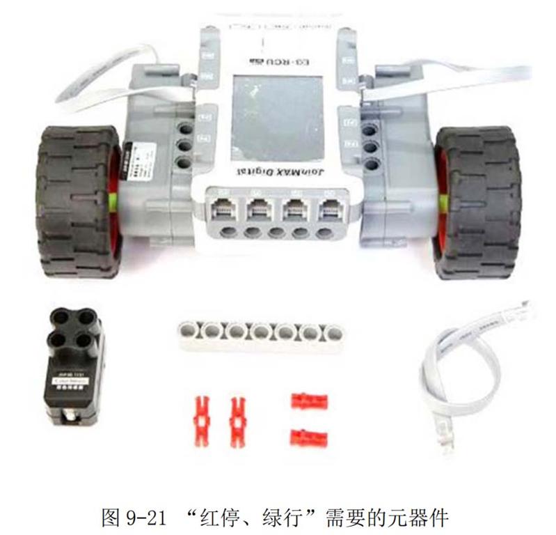 下面我们来准备需要的元器件(参见图 9-21)。在基本车的基础上,安装颜色传感器。