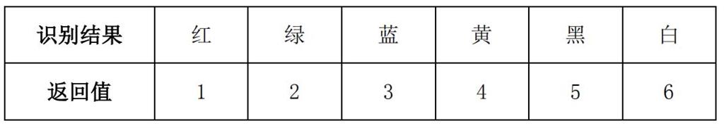 颜色传感器能智能识别出 6 种颜色,在程序中可以表现为不同的返回值,以下就是各种颜色与返回值的对应关系:
