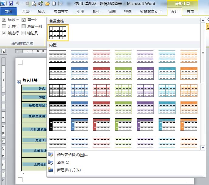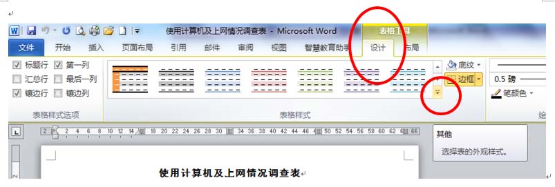 (4)选定表格
