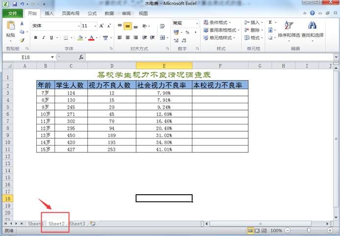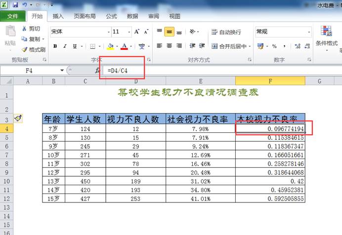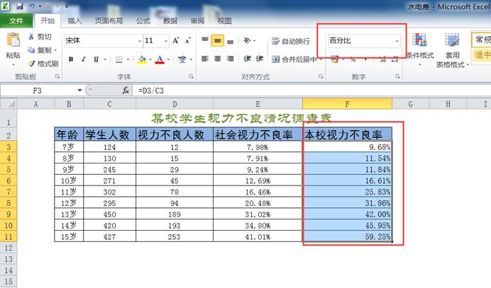 计算视力不良率的公式:视力不良率=视力不良人数¸学生人数