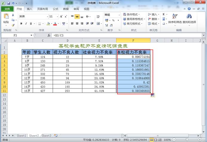 图5-3-2 视力不良率计算