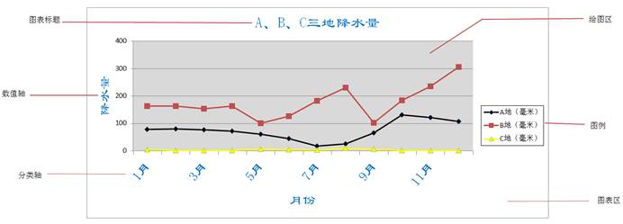 图表对象名称如图5 -5- 5所示。以降水量分配柱形图为例,介绍图表的修饰。