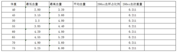 表5-6-2所示为人体含血量表