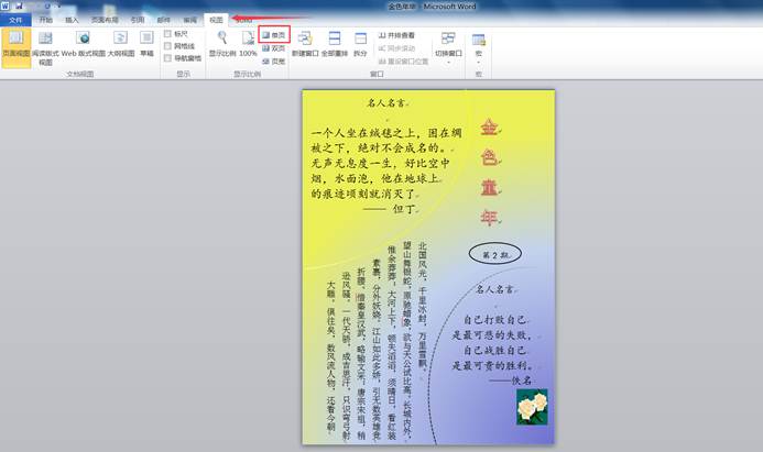 从“相关资源—第6章 多媒体基础”下载“金色年华”素材文档并将其打开。