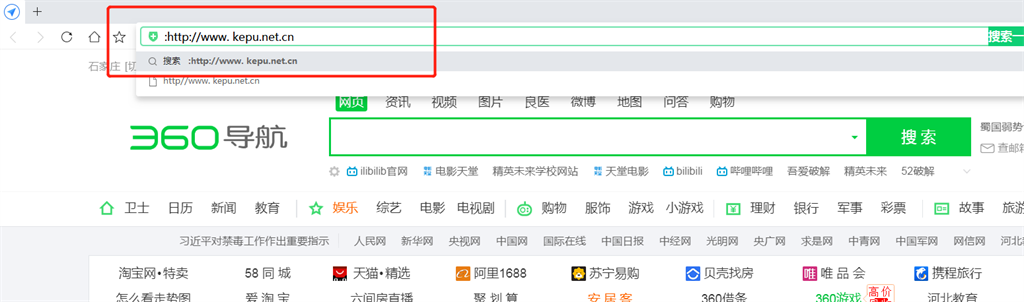 2.在地址栏中输入中国科普博览网站的域名地址:http://www.kepu.net.cn按回车键,如图7-2-1所示。