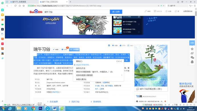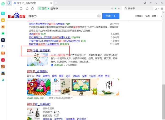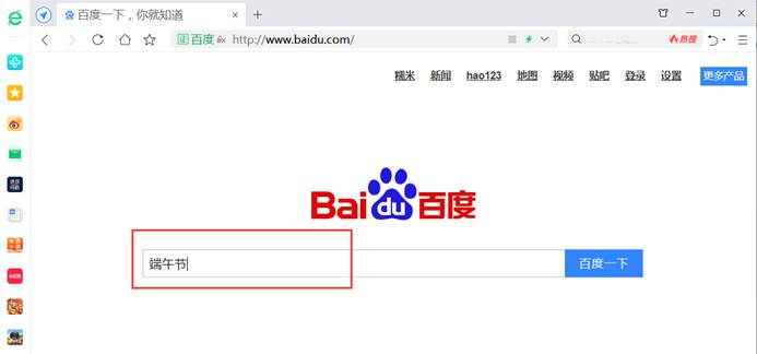 这里,我们以“端午节”为例。在输入栏中输人“端午节”,如图7-3-1所示,并单击“百度一下”按钮。