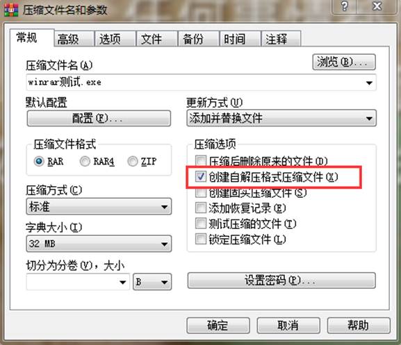 有的时候,我们更需要的是创建自解压文件,这样就可以随时随地的调用它,而不需要压缩软件的支持。