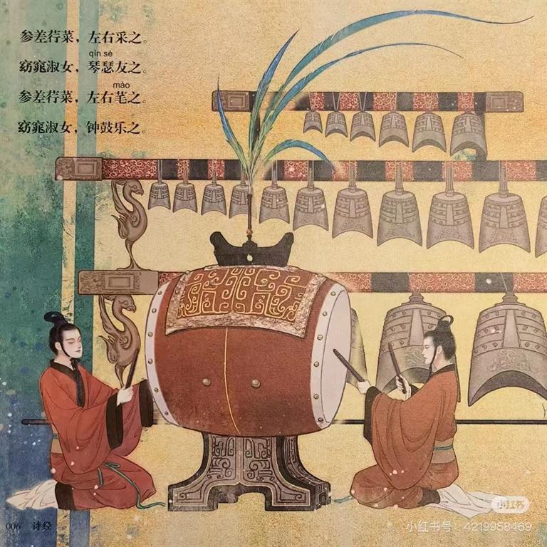 《国风》是人民大众的口头创作,是《诗经》中的精华部分,有不少章揭露贵族统治集团对人民的压迫和剥削,也反映了人们的劳动生产情况和爱情生活。常用复沓的手法来反复咏叹,一首诗中的各章往往只有几个字不同,表现了民歌的特色。