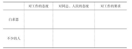 二、课文第2、3段通过对比的手法,突出了白求恩同志的高贵品质。默读这两段,勾画出相应文字,填写表格,体会对比手法的表达效果。