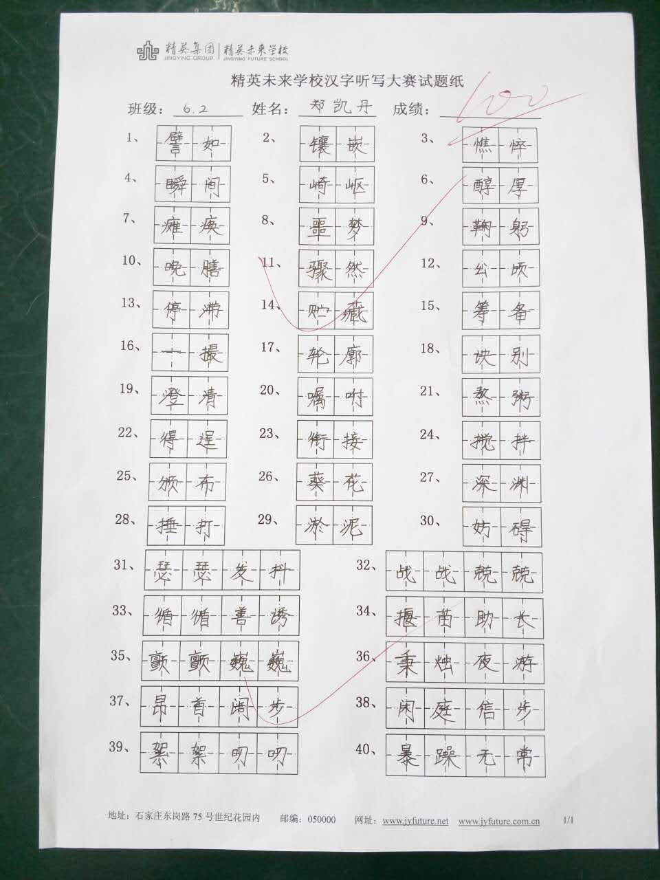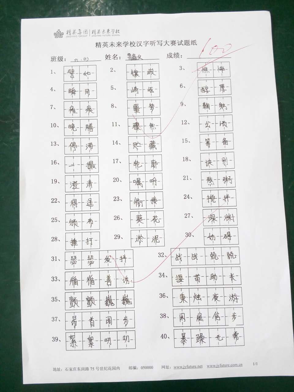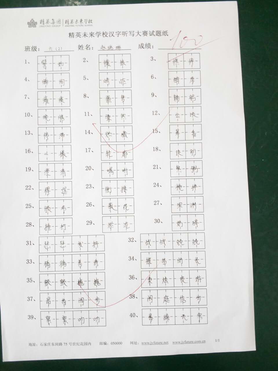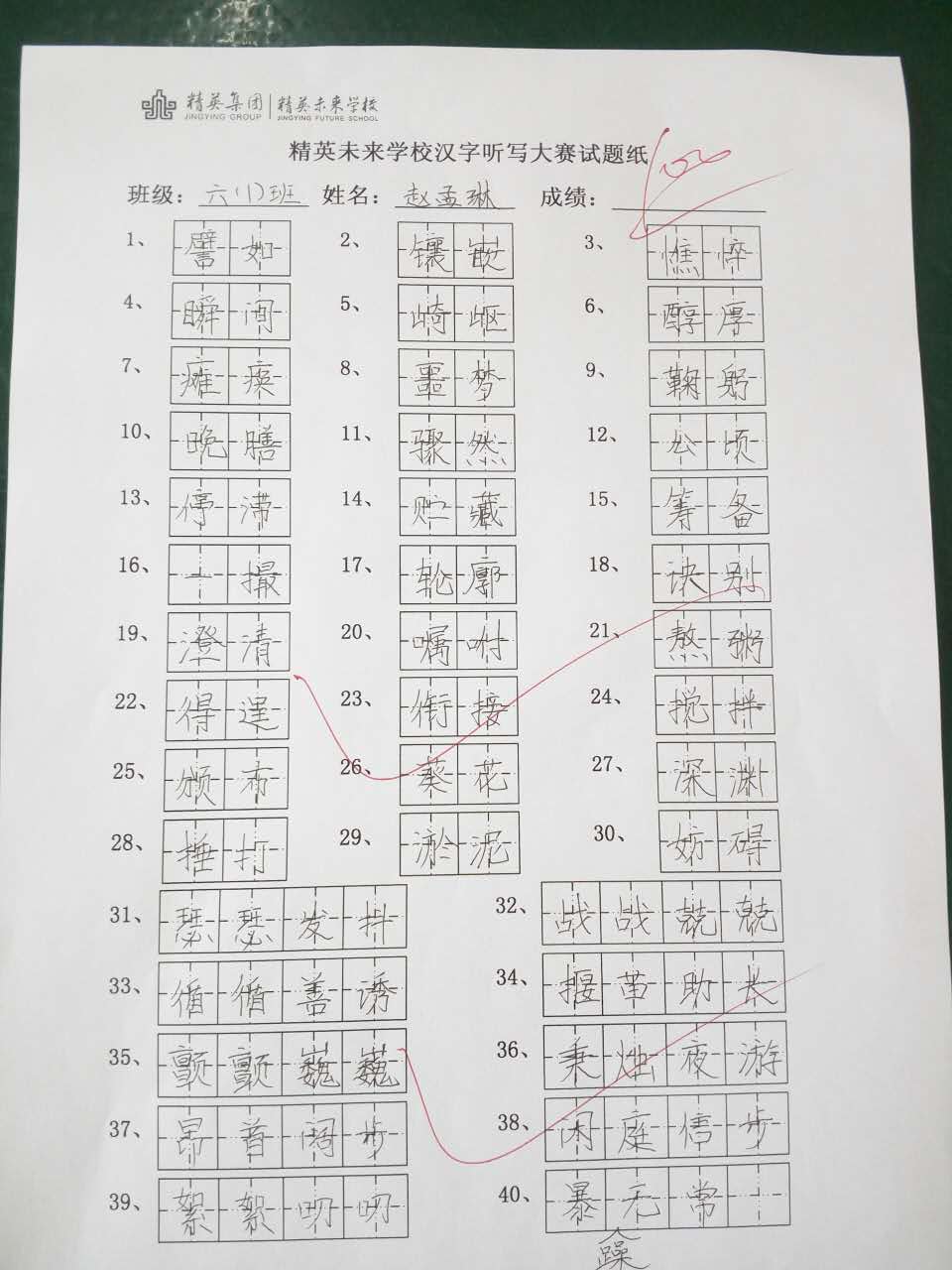 六年级汉字听写大赛一等奖