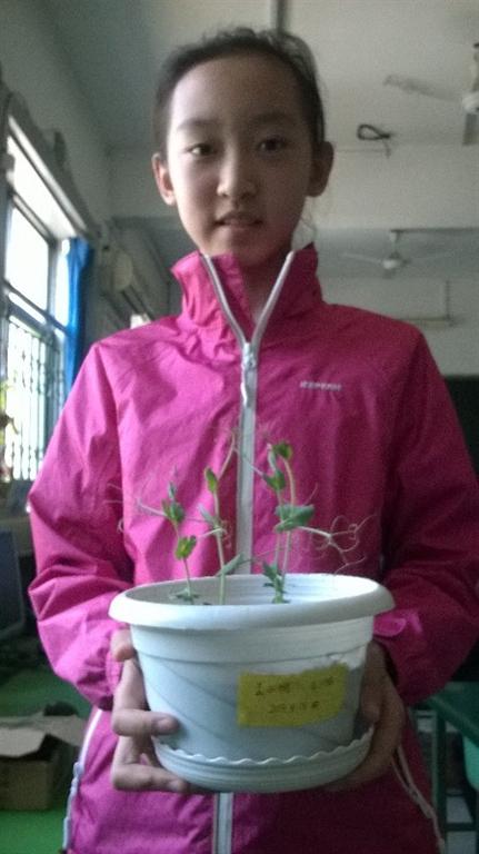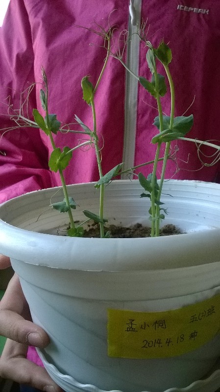 看着眼前慢慢长大的豌豆苗,我非常欣慰,我感觉到我的努力没有白费,得到了一点回报。“可爱的豌豆苗,你们要快快长大,变得强壮一点。加油!”