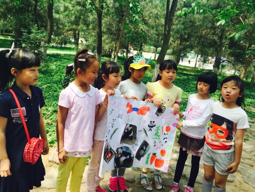 首先,我们在确定完主题后,给学生设定了几个目标:第一,通过这次游学活动,对一种动物有深入的了解。第二,在本次活动中,学会团队的配合。第三、完成一幅动物宣传海报。那么第三个目标会呈现出一个展示成果。