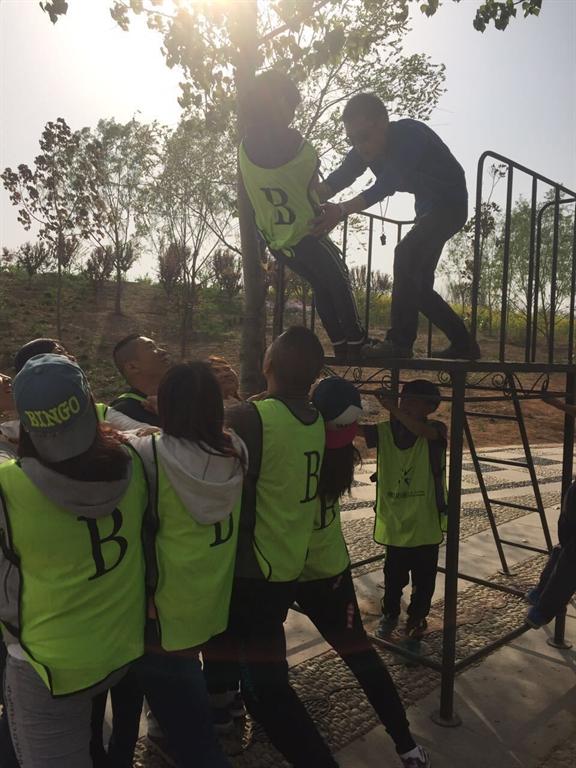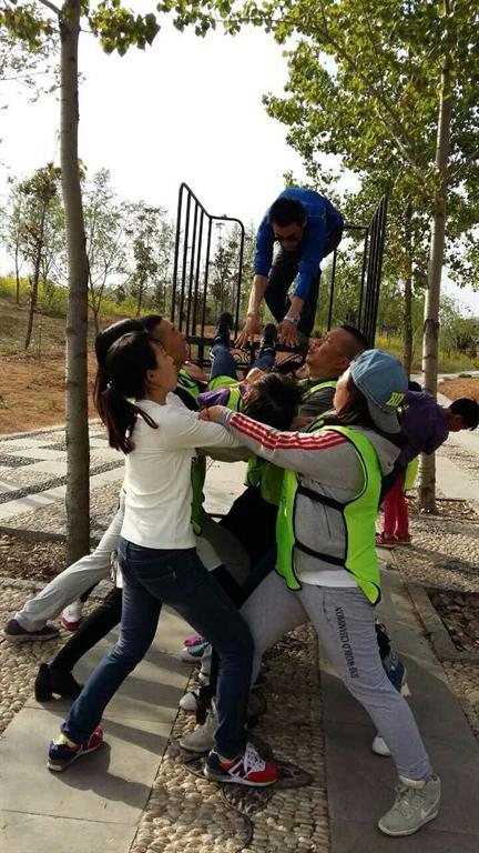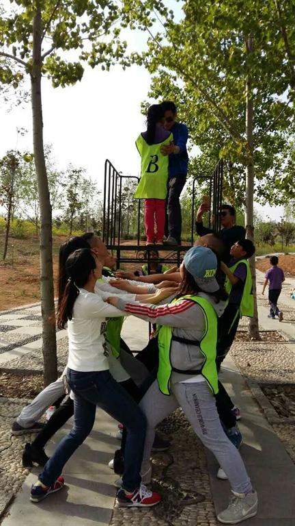 下午开始我们的拓展之旅。首先开展的是信任之旅------信任背摔。