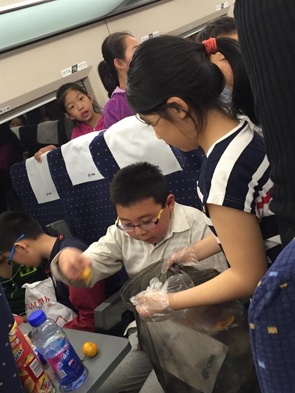 我们还分成四个小组: 环保组、安保组、后勤组、宣传组,我们分工合作,在游学过程中积极表现着。环保组工作认真,他们沿途提醒同学们注意环境卫生,并负责收集垃圾,受收到家长和路人的好评。安保组在危险的地方,及时提醒大家注意安全。后勤组为我们提供旅游需要的物品。宣传组为我们记录一个个精彩的瞬间。通过分组活动,让我们学会合作,学会相互照顾,学会担当责任 。同时,在学会照顾同学的同时,我们也学会了照顾家长,还询问家长累不累,吃饱了没有。
