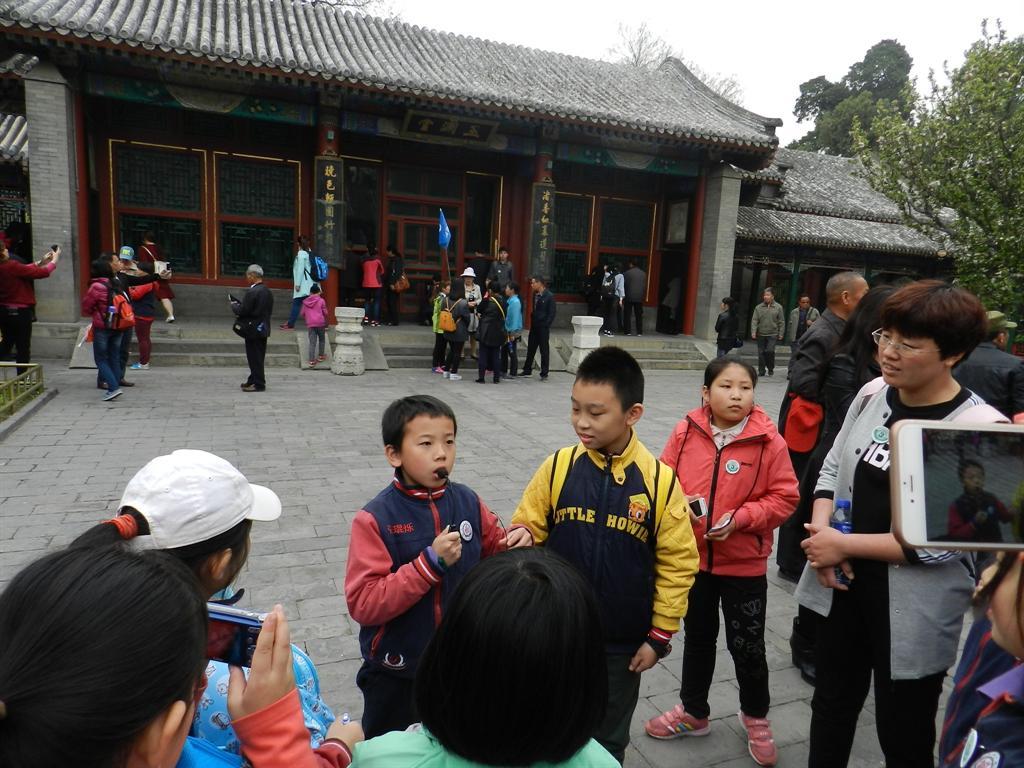 在这次游学活动中,我们不仅看到了美丽的风景,还得到了充分的锻炼。我们轮流充当导游,介绍着各个景点的特点,介绍这里的文化和历史 。同时,我们采取边游边介绍边评比的方式,评选出最佳导游。在游玩中学,在欣赏中识,在导游中记,同学们快乐极了。 边游边导的形式还让同学们锻炼了胆量,提高了表达能力。