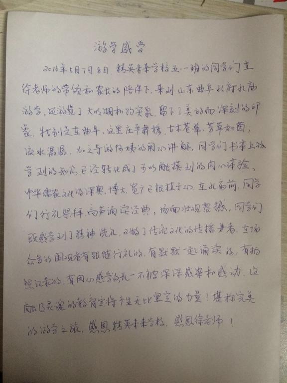 此次游学,同学们把课本与实践相结合,从中感悟到国学的博大精深,也开拓了大家的视野,增进了彼此的友谊和对国学经典的敬意。