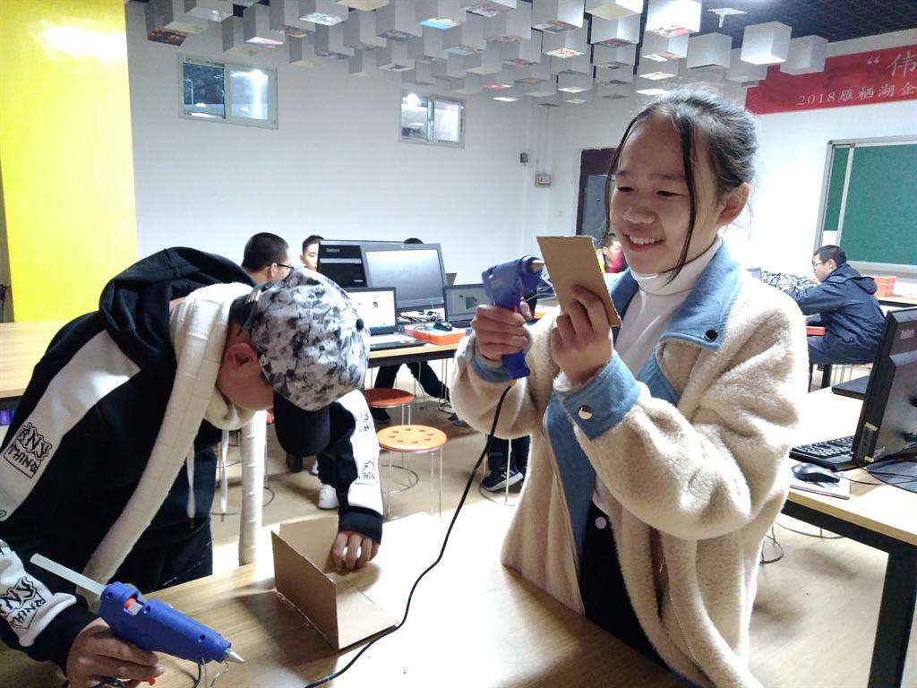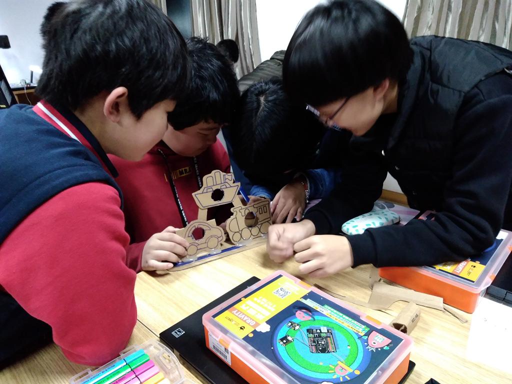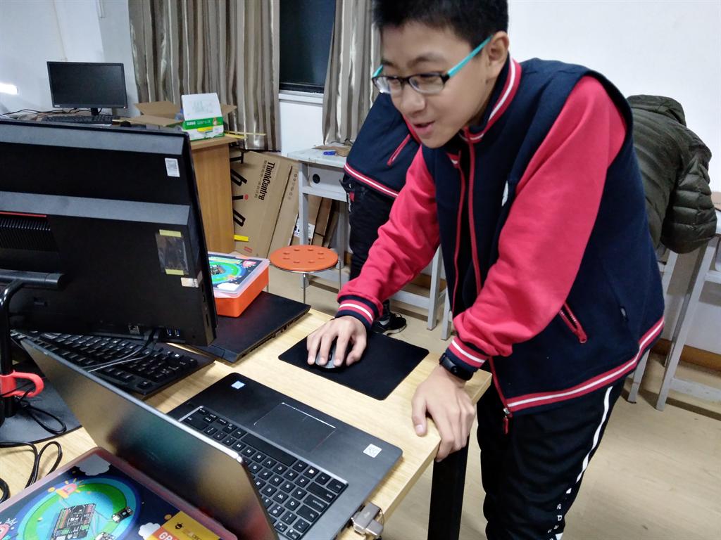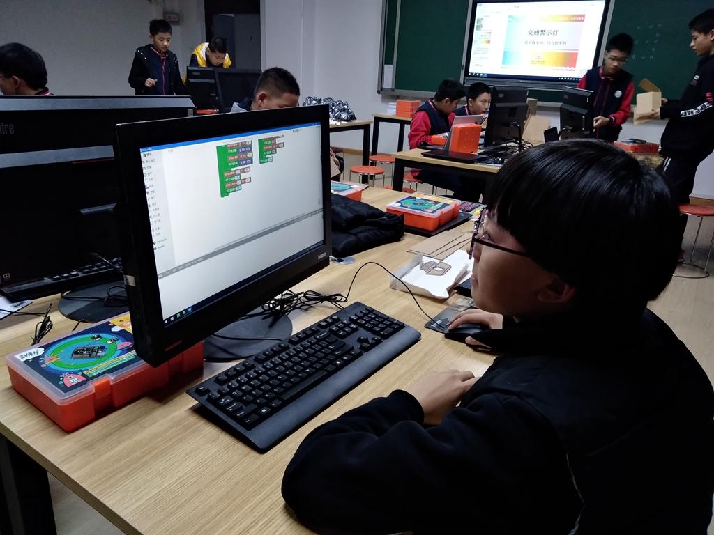 智能硬件课堂上学生制作交通警示灯精彩瞬间