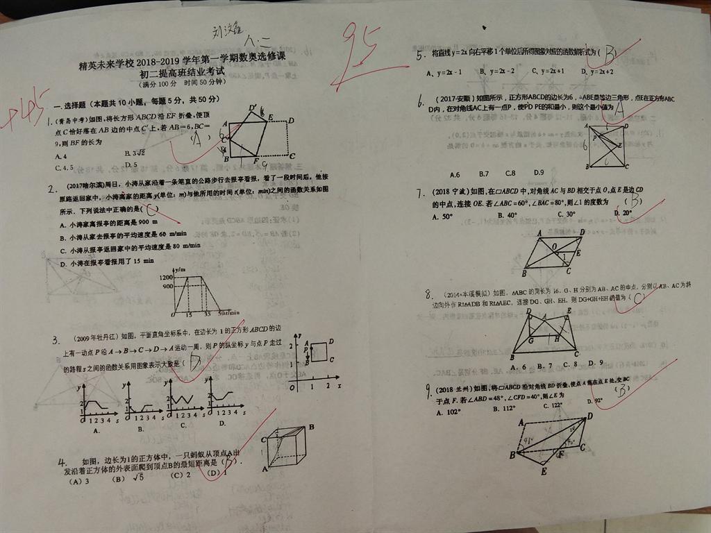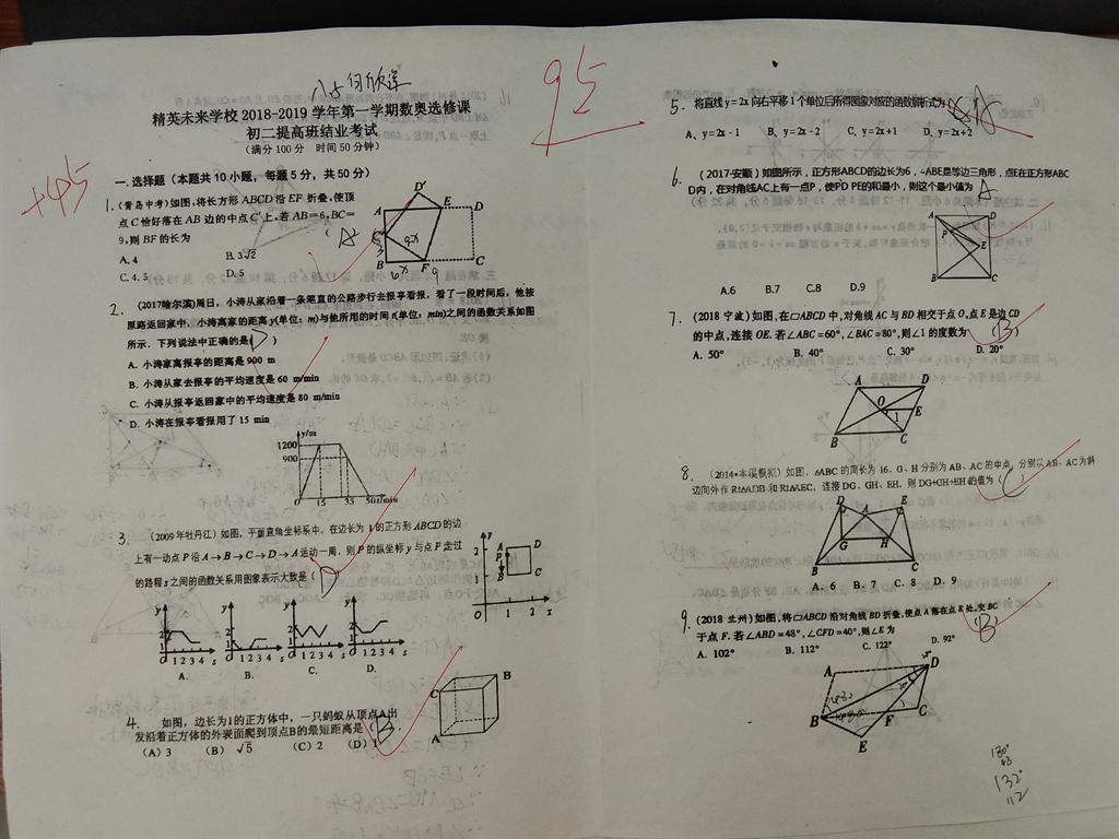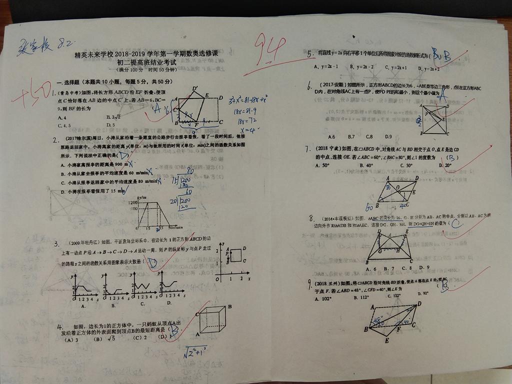 数奥选修课优秀试卷(初二提高班)
