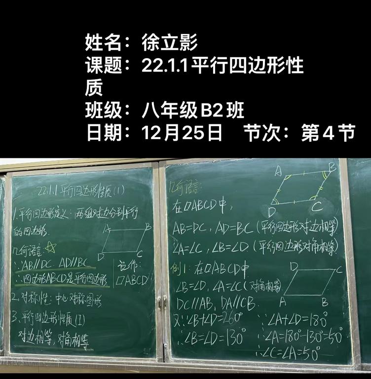 初二数学组板书