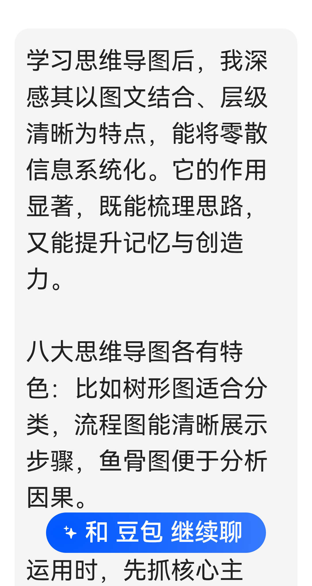 学习思维导图后,我深感其以图文结合、层级清晰为特点,能将零散信息系统化。它的作用显著,既能梳理思路,又能提升记忆与创造力。