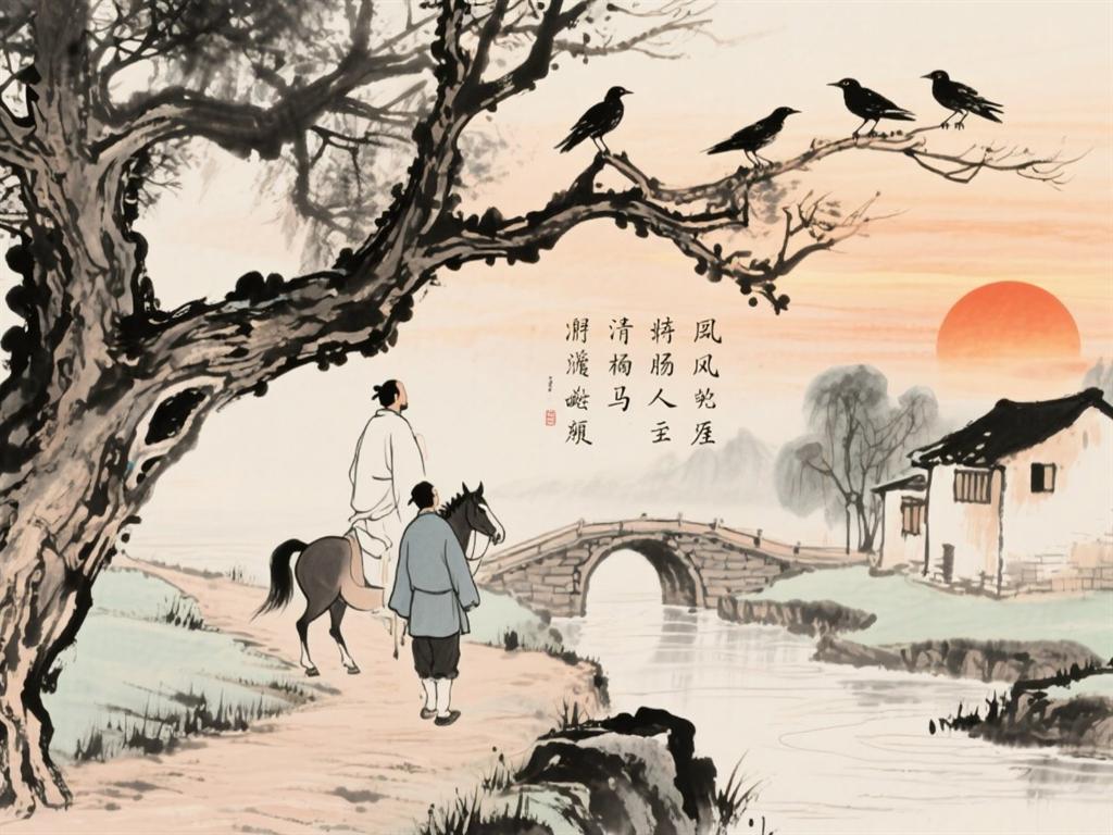 枯藤老树昏鸦,小桥流水人家,古道西风瘦马。