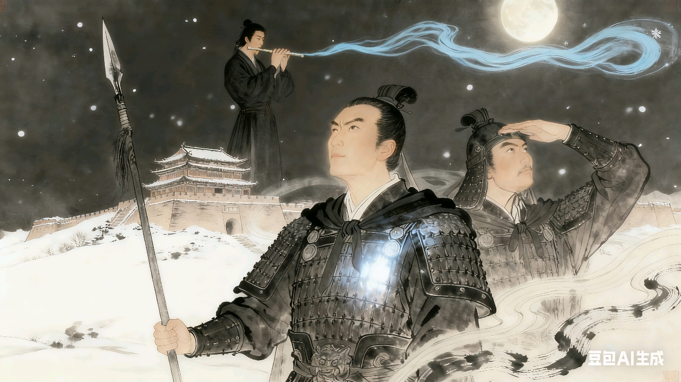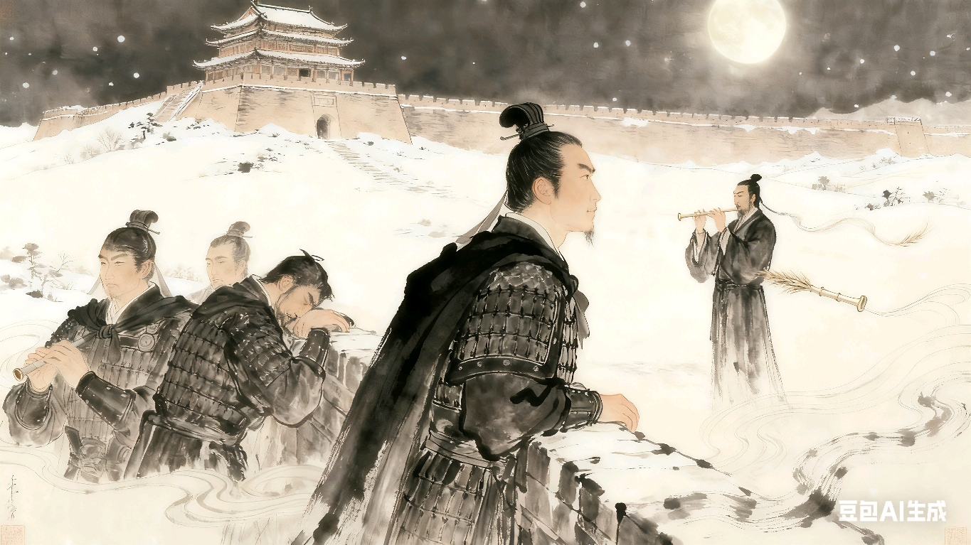 回乐烽前的沙地白得像雪,受降城外的月色有如秋霜不知何处吹起凄凉的芦管,一夜间征人个个眺望故乡,让豆包不断细化生成 增添细节