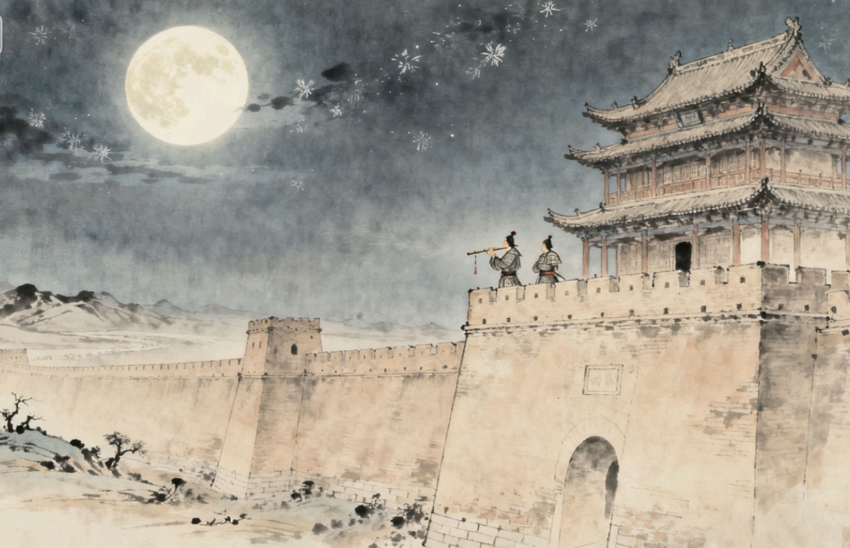 不知道何处吹起西凉的芦管,让出征的将士一夜都在思乡。