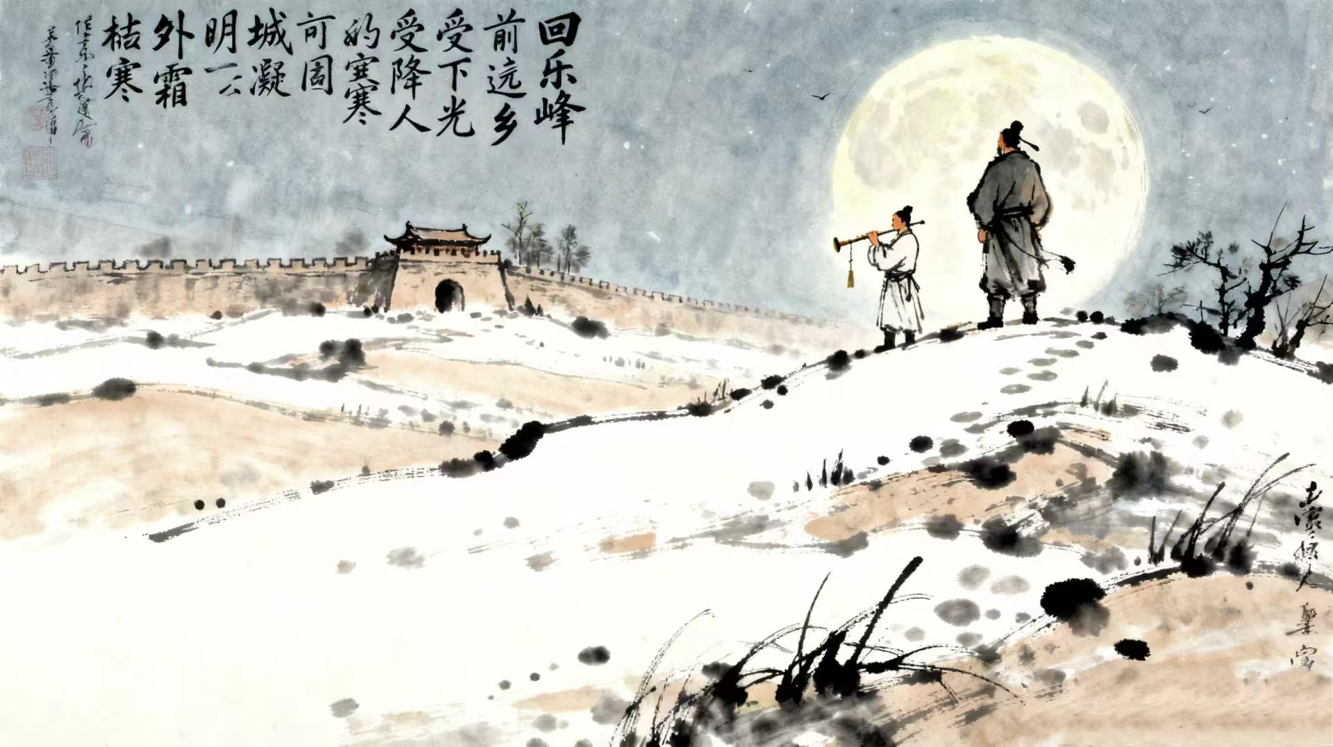 回乐峰前的沙地白得像雪,受降城外的月色犹如秋霜。不知何处吹起凄凉的芦管,一夜间征人个个眺望故乡。