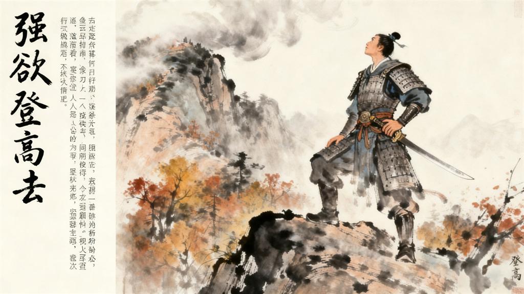行军九日思长安故园,岑参:强欲登高去,无人送酒来。遥怜故园菊,应傍战场开。古人有重阳登高饮酒赏菊的风俗。可是处于军旅之中又遭遇战乱。诗人强欲登高,感叹无人送酒,其中的惆怅凄凉。难以言表。很快。诗人又从这种自我感伤中走出来。联想到故园的菊花—他们在沦陷的都城应该是怎样一番景象呢?虽然没有主人的欣赏。孤寂而凄凉。但也一定不负秋阳。在断壁残垣间竞相绽放