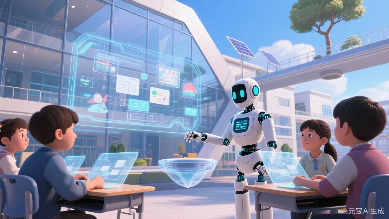 在科技赋能的教育新场景里,智能教育机器人正引领学习革命!看,孩子们围坐桌前,与灵动的AI伙伴互动,全息界面绽放知识的光彩,太阳能建筑见证未来的模样。这里,传统课堂被打破,科技与教育深度融合:机器人化身“超级导师”,以趣味交互点亮求知欲,用前沿技术拓展学习边界。无论是编程启蒙、科学探索,还是创意激发,智能教育都能精准适配,让每个孩子都能在科技的沃土中,解锁无限潜能,拥抱充满可能的未来!选择智能教育,就是为孩子插上科技的翅膀,让他们在创新的天空自由翱翔,开启属于他们的智慧时代!
