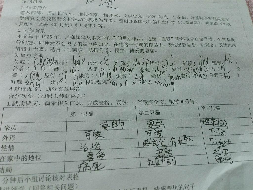 当前位置:合作研学 -> 默读课文,填写表格 -> 七年级3班