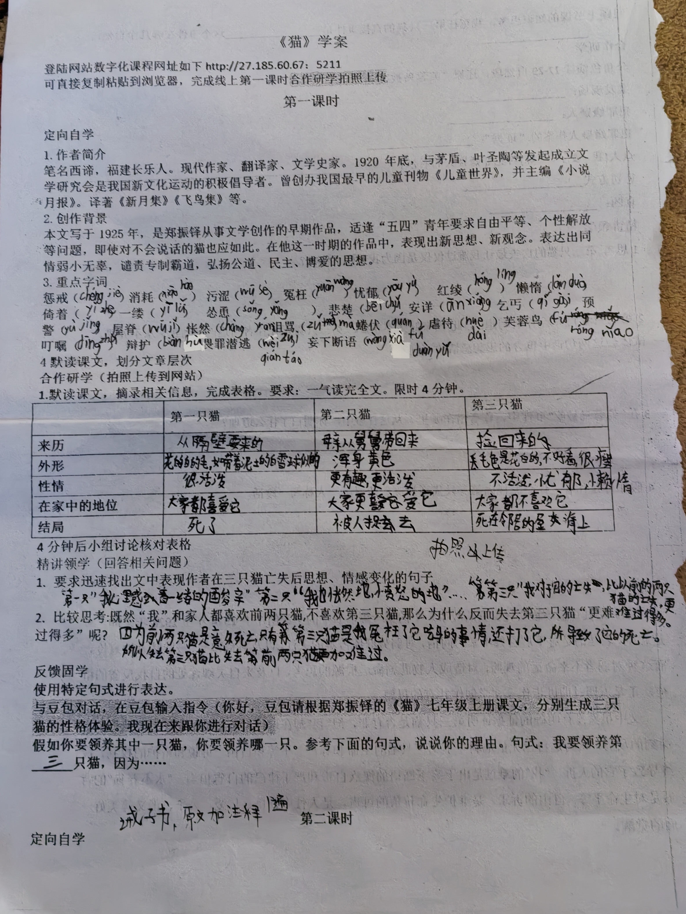 当前位置:合作研学 -> 默读课文,填写表格 -> 七年级4班