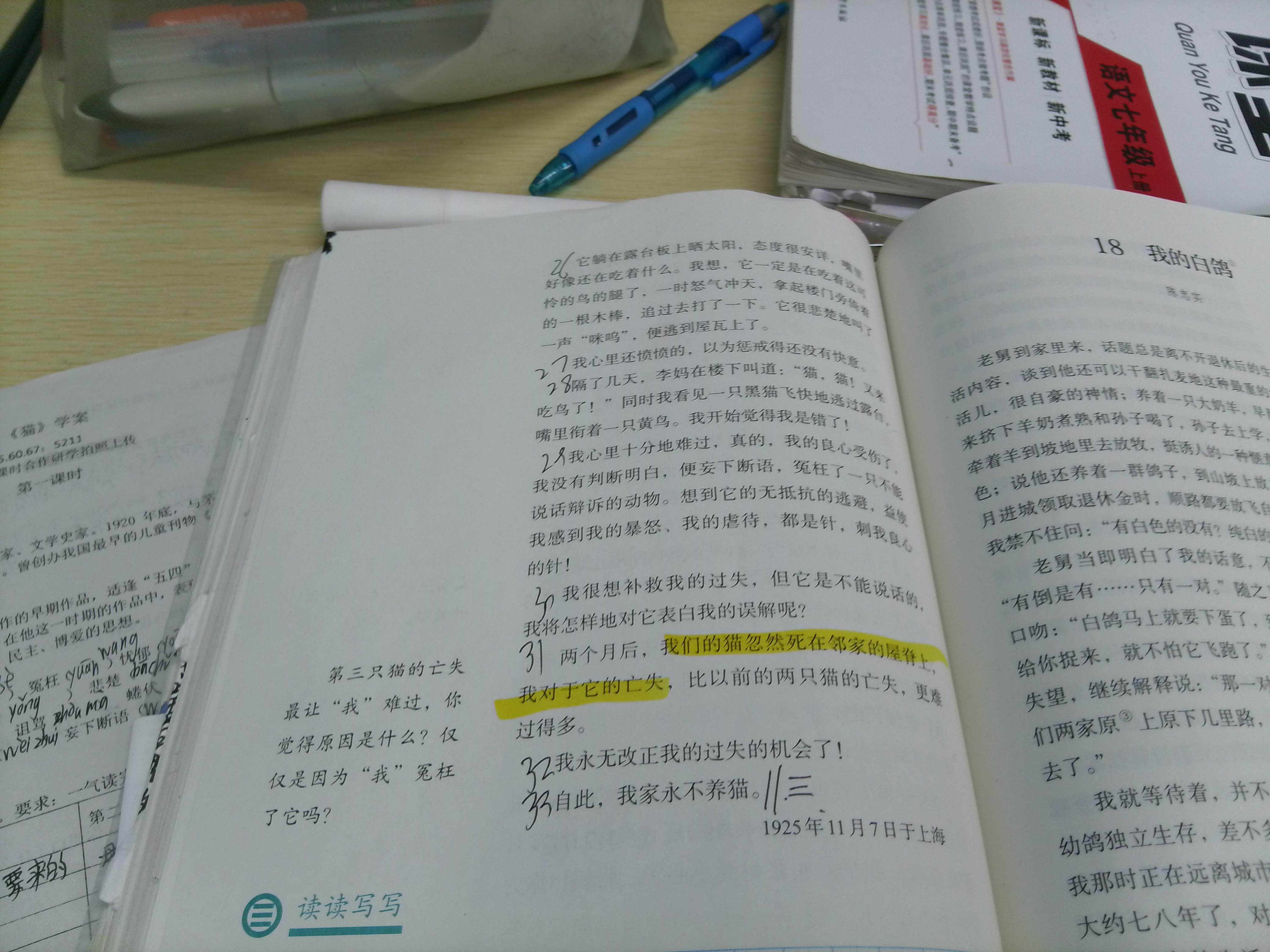 当前位置:合作研学 -> 默读课文,填写表格 -> 七年级7班