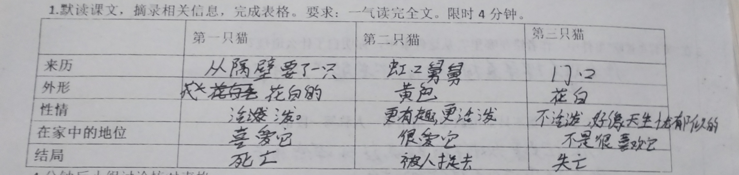 当前位置:合作研学 -> 默读课文,填写表格 -> 七年级13班