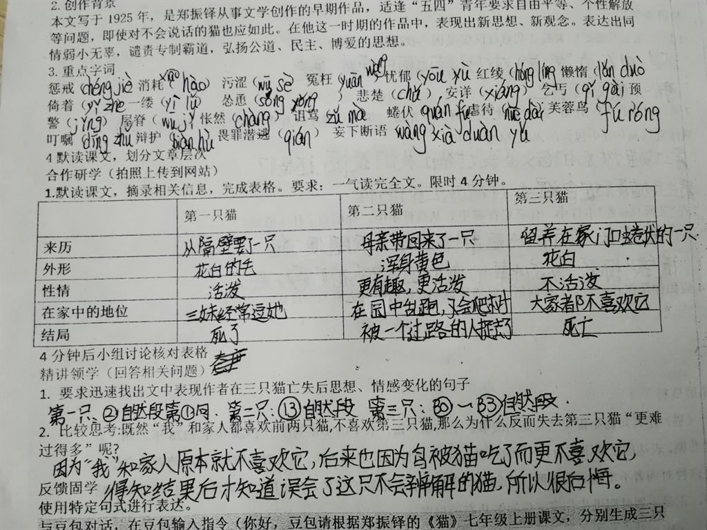 当前位置:合作研学 -> 默读课文,填写表格 -> 七年级14班